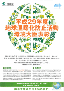 <ご案内>平成29年度地球温暖化防止活動環境大臣表彰
