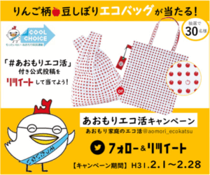 「#あおもりエコ活」Twitter キャペーン りんご柄豆しぼりエコバッグ当たります!