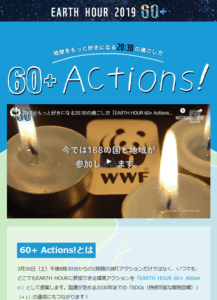 EARTH HOUR2019 60+Action! 毎年3月最終土曜日(今年は30日)の20:30~21:30の1時間、 消灯というアクションを通じて「青い地球の未来を想う」ことであり、WWS(世界自然保護基金)が提案し […]
