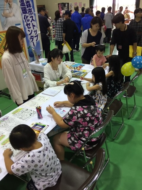 グローブエナジーグループ秋の大感謝祭! 2019年9月28日 最終更新日時 : 2025年11月1日 kankyo-partnership 9月14日(土)15日(日)の2日間、青森県産業会館において、エネオスグローブエナジーグループ秋の大感謝祭が開催され、今年もストップ温暖化センターがブース参加して、地球温暖化防止とエコドライブをPRしました。エコドライブシミュレーターでお父さんがエコドライブ体験をしている間、子どもたちはエコルくんの塗り絵や絵本を楽しみました。