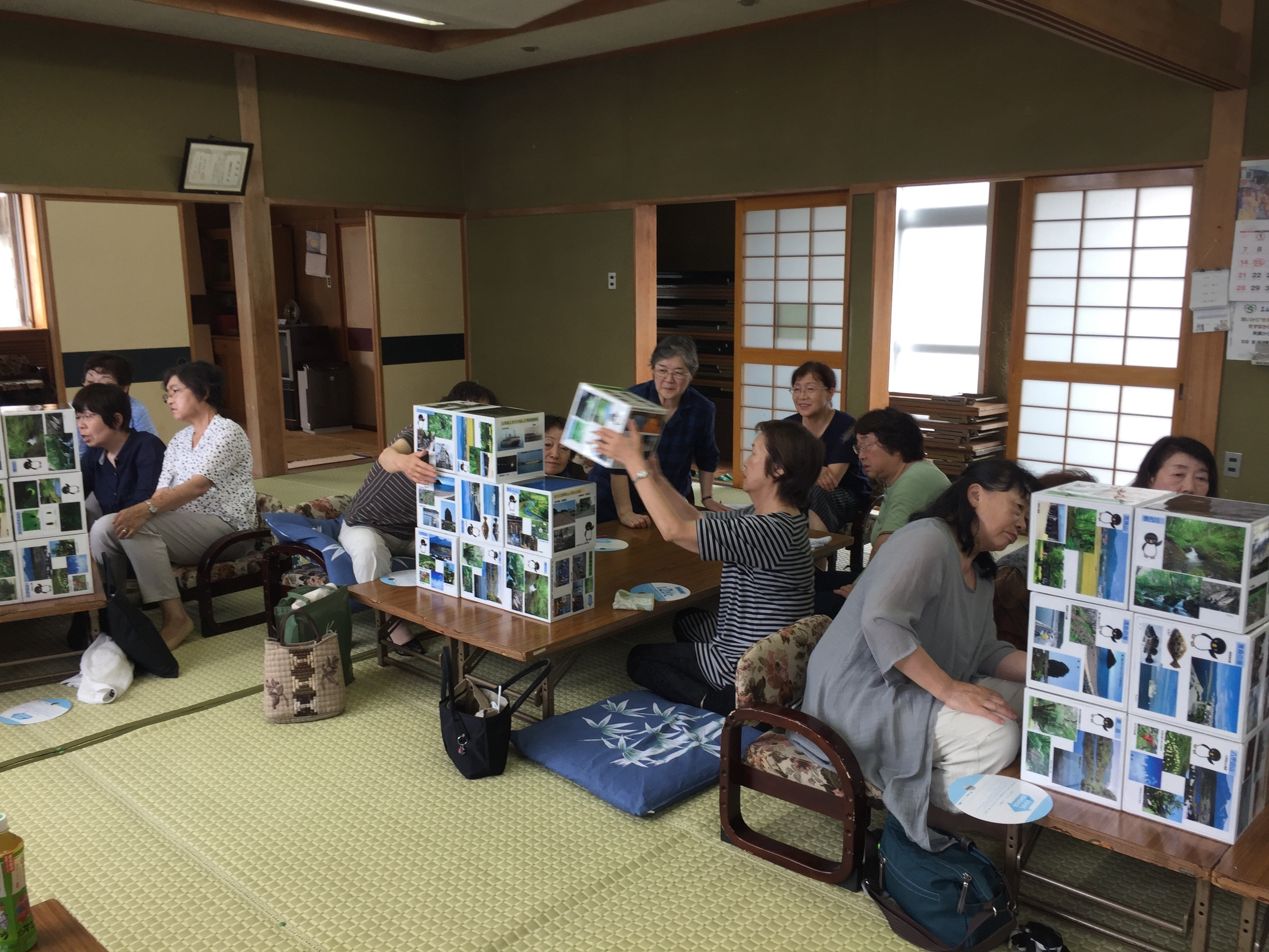 女性学習グループ「萩の会」で「大好き!あおもり」講座 2019年8月19日 最終更新日時 : 2025年11月1日 kankyo-partnership 7月25日(木)青森市ほろがけ福祉館において、オリジナル教材「大好き!あおもり」を使った出張かんきょう講座を実施しました。 地域で様々なことを学ぶ「萩の会」の定例の学習会で、講師はエコサポーター(青森市地球温暖化防止活動推進員)の佐藤光子さん。 昔の青森市を学ぶ面では、写真をみて懐かしい話題が広がり、笑顔が広がっていました。 出張かんきょう講座に興味をお持ちの方は、お問い合わせください。