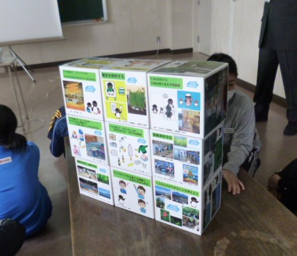 20㎝四方のキューブ9個を使って、青森市の自然や文化を学び、地球温暖化についても考えるというもので、推進員でつくる「チームあずまし」が企画から作成、先生役まで、すべて行いました。