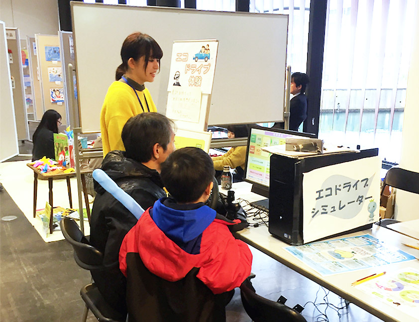 (左)エコ検定紹介コーナー (右)エコドライブに挑戦コーナー