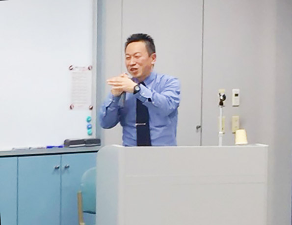 (左)第1部 講演 (右)講師の宇羽野浩氏