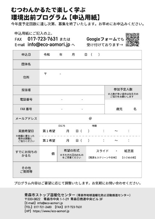~むつわんかるた環境出前プログラム~お申込み受付中です! 2025年6月14日 最終更新日時 : 2025年8月29日 kankyo-partnership 今年も始まりました、「むつわんかるた環境出前プログラム」。むつ湾の海や海岸の動植物を題材にした「むつわんかるた」を使用し、楽しみながらむつ湾を大切にする心を育てるプログラムがご好評をいただいております。青森市・平内町・外ヶ浜町・今別町・蓬田村のこども園、幼稚園、保育園や保育所などが対象となっております。子ども会や放課後児童会でもご利用いただけます。ぜひお申し込みください。