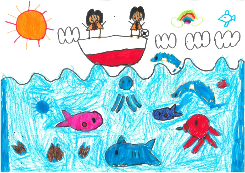 今年度のむつ湾の絵コンクールには、幼児の部に110、小学生の部に18の作品が集まりました。ご応募いただいた皆さま、ありがとうございます!その中から審査で選ばれた、7点の入賞作品をご紹介します。