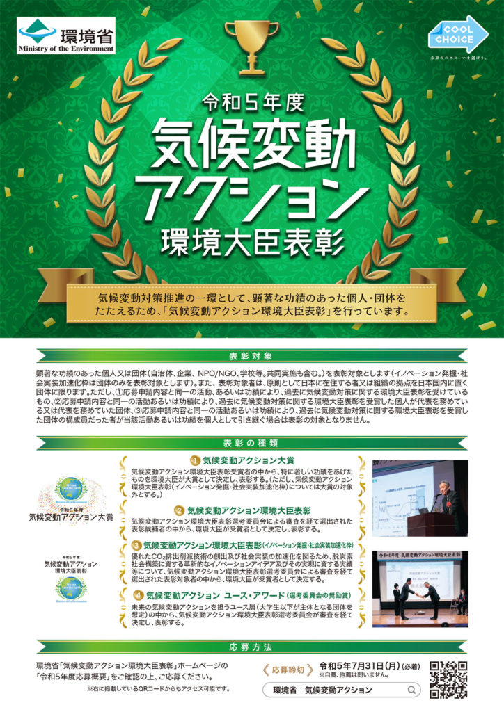 令和5年度気候変動アクション環境大臣表彰」募集開始!