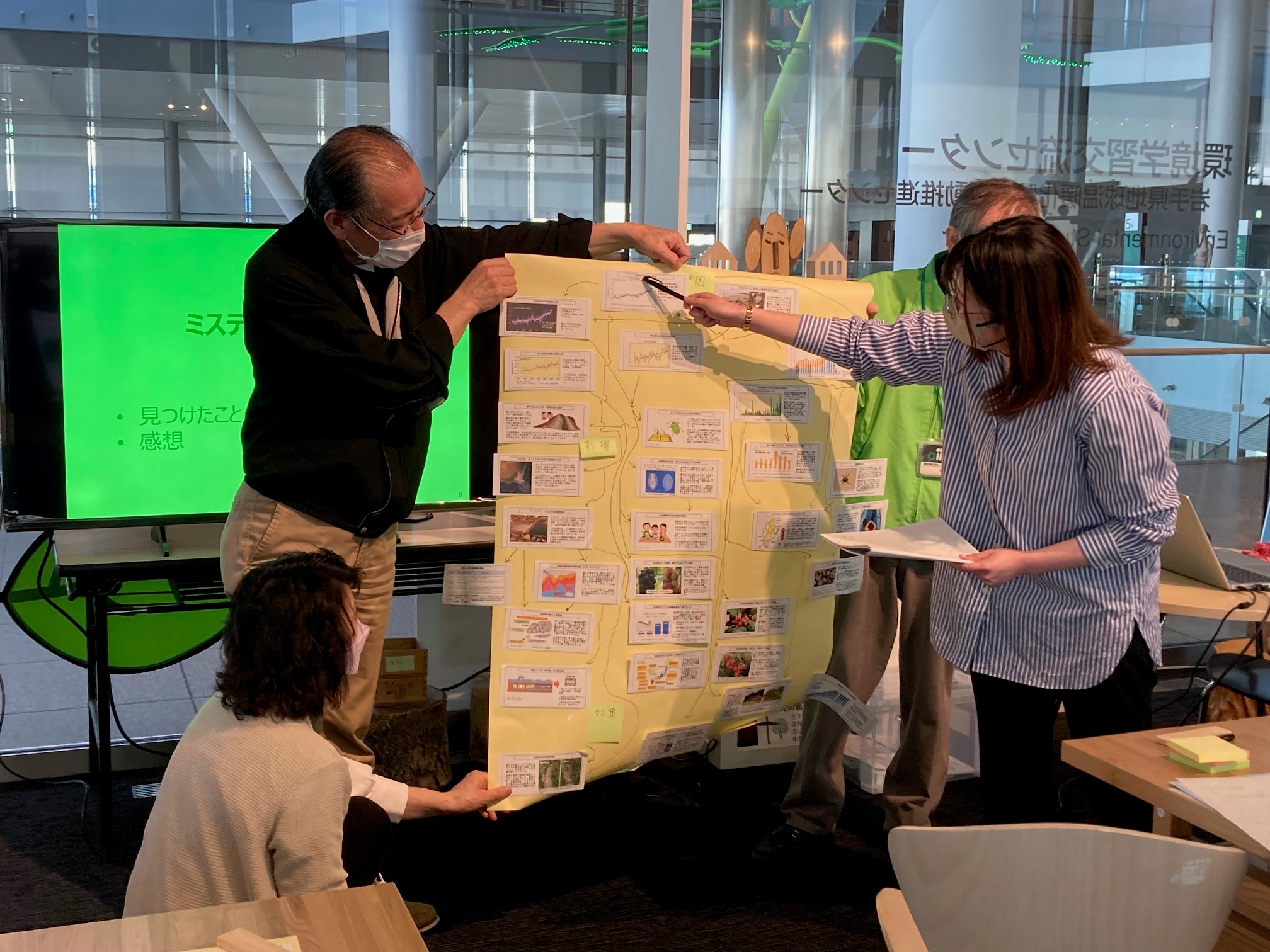 気候変動の影響や適応策を楽しく学ぶことのできるワークショップがあると聞いて、岩手県地球温暖化防止活動推進センターにお邪魔しました。講師は環境層東北地方環境事務所 地域適応推進専門官 金 鋼一さん。サンマの不漁、テムズ川の防潮堤、デング熱の発生など、それぞれが、どう関係し合っているか、頭を使うワークショップでした。いつか青森県でも実施したいものだと思いました。