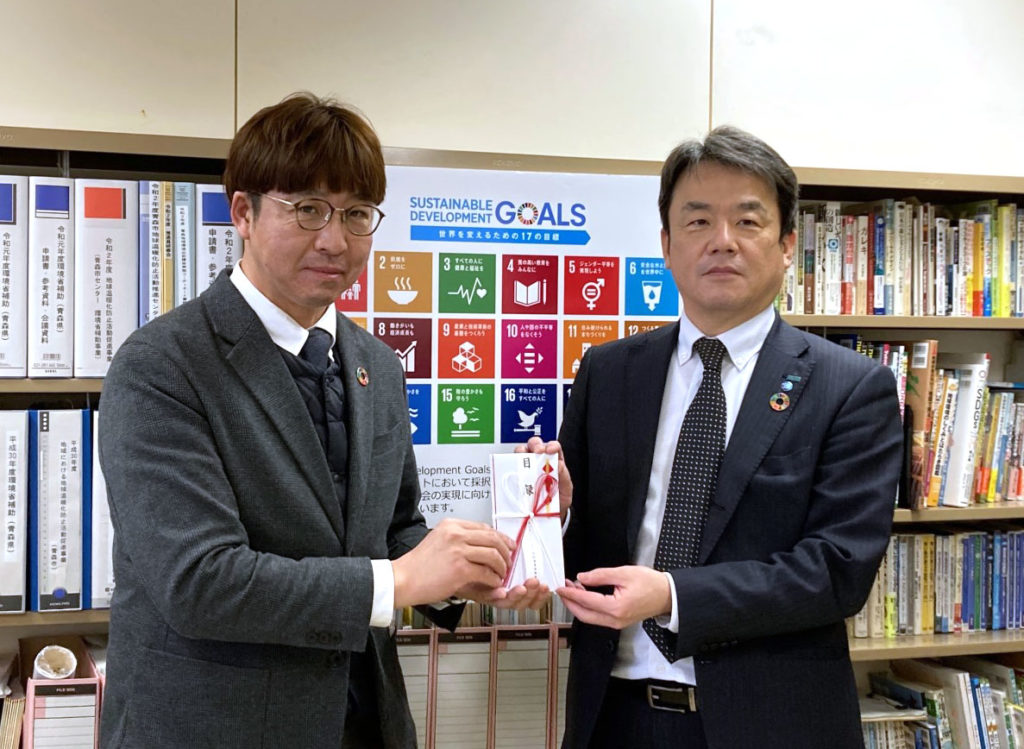 あいおいニッセイ同和損保保険さまから今年も寄付 2023年3月1日 最終更新日時 : 2025年10月23日 kankyo-partnership あいおいニッセイ同和損保保険さまから今年も寄付をいただきました。 MS&ADインシュアランス グループのあいおいニッセイ同和損害保険株式会社は、地域貢献・社会貢献取り組みの一環としてペーパーレス化につながるeco保険証券・Web約款を導入したのに伴い、環境保護活動を行う全国各地の団体に寄付等を行っています。 2月21日(火)、青森支店塚田支店長から代表理事渋谷への贈呈セレモニーが行われました。 当センターはこれからも、地球温暖化防止とSDGsの実現のため、がんばります!