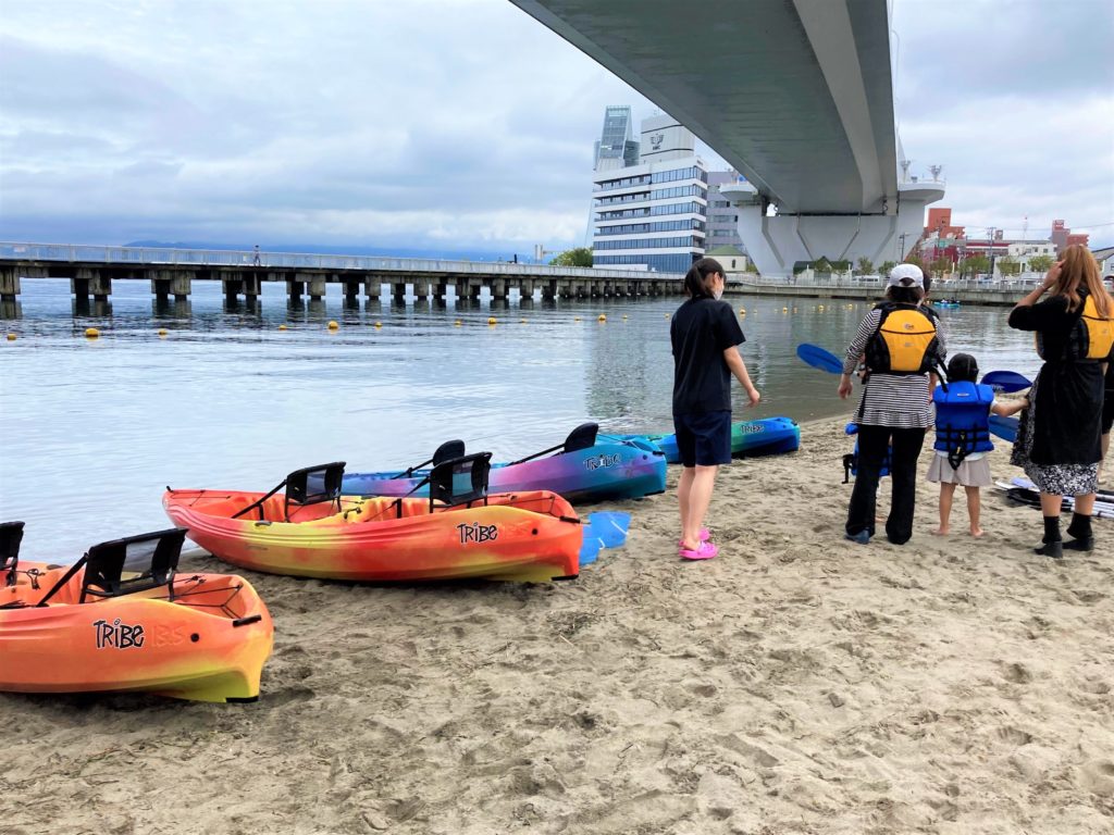 ワラッセ横の西の広場とあおもり駅前ビーチでは、むつ湾沿岸の物産展、ネコ車で焼くバーベキュー、シーカヤック体験がありました。ワラッセ内では、むつ湾の絵コンクールの表彰式、コンクール参加作品展示、むつわんかるたなどがあり、楽しい一日となりました。