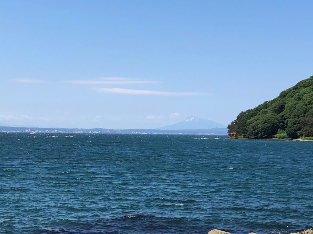 当日は少し風がありましたが快晴に恵まれ、遠くに岩木山まで見える行楽日和でした。でも、足元をみるとやはりたくさんのゴミが流れ着いていました。