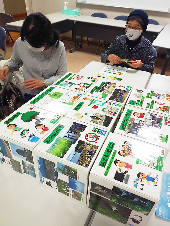 青森市消費者の会で「大好き!青森市」講座を実施しました 2020年11月22日 最終更新日時 : 2025年11月1日 kankyo-partnership 11月2日(月)と6日(金)、青森市男女共同参画プラザでエコサポーターの柏谷公子さんと千田雅美さんを講師に、オリジナル教材「大好き!青森」を使った講座を実施しました。 「大好き!青森」は、青森市の文化や歴史とともに、自然環境と地球温暖化をキューブパズルで学ぶもので、小学生対象に制作しましたが、大人にも使えます。 大人の皆さんは、近年の積雪量や気温の変化を実感しているだけに、地球温暖化の理解が深まったようでした。 オリジナル教材「大好き!あおもり」で青森市の環境を再確認