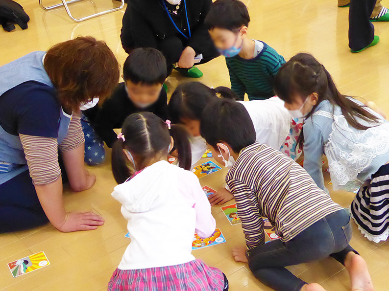 現在、青森市内を中心に幼稚園、保育園、こども園などをエコサポーターが訪れ、むつ湾のことを少し学んでから、かるたを楽しむプログラムを実施しています。センターでは、実施を希望する幼稚園、保育園、こども園を募集しています。詳しくはセンター事務局にお問い合わせください。