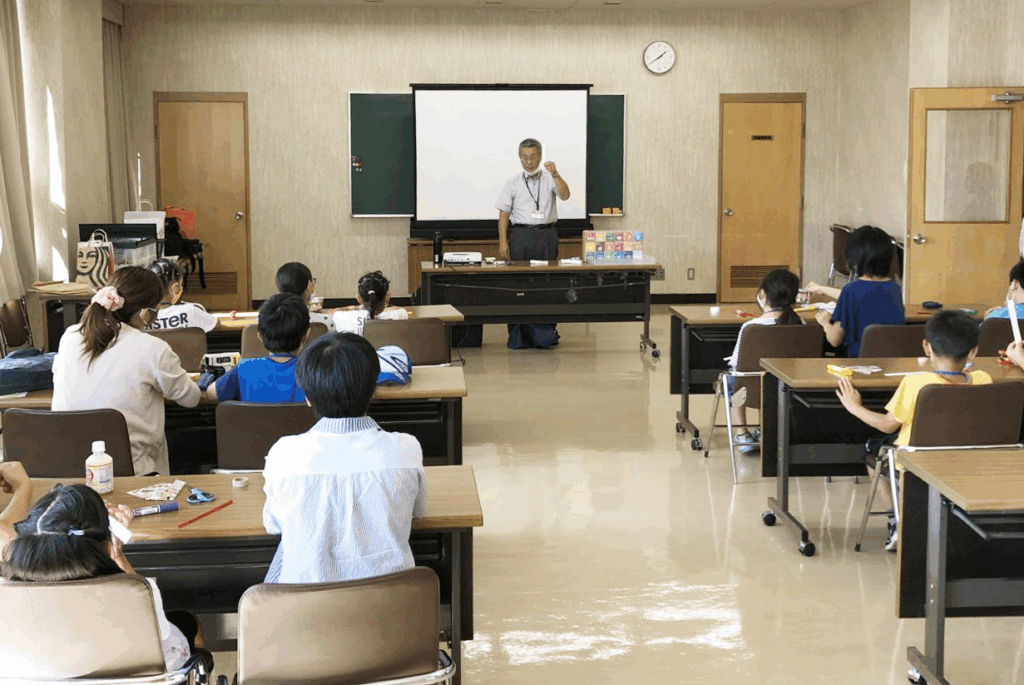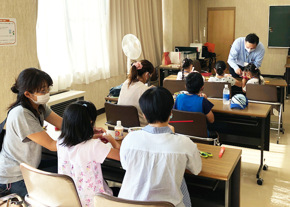 階上町でSDGsとリサイクル工作を実施しました 2020年10月15日 最終更新日時 : 2025年11月1日 kankyo-partnership 9月19日(土)、階上町ハートフルプラザはしかみで町教育委員会主催「わんぱく王国」の一環として親子環境出前講座を実施しました。 センターからは推進員の貝森毅彦さんと佐々木秀智さんが講師とサポートとして参加、はじめに貝森さんによる「SDGsってなんだろう」のお話、続いて貝森さん、佐々木さんが講師となって、「親子で作ろうパックスネークとパックコプター」をしました。 子どもたちは、牛乳パックで作ったタケコプターならぬパックコプターを飛ばして楽しみました。 (右)親子でパックコプター作りに挑戦