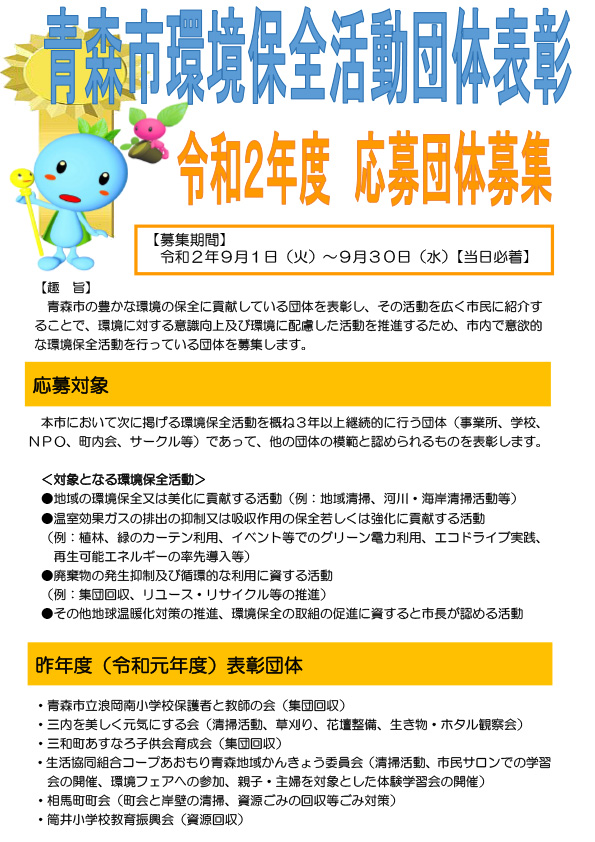 青森市環境保全活動団体表彰 令和2年度応募団体を募集します!